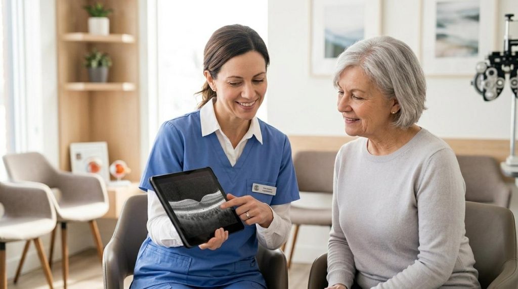 Once the scan is complete, the doctor walks you through the results directly. You get to see the images and hear a clear explanation of what they show. Those results then help shape a personalised eye care plan that fits your needs.